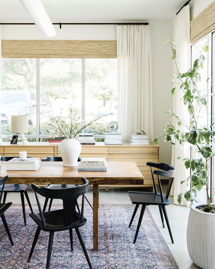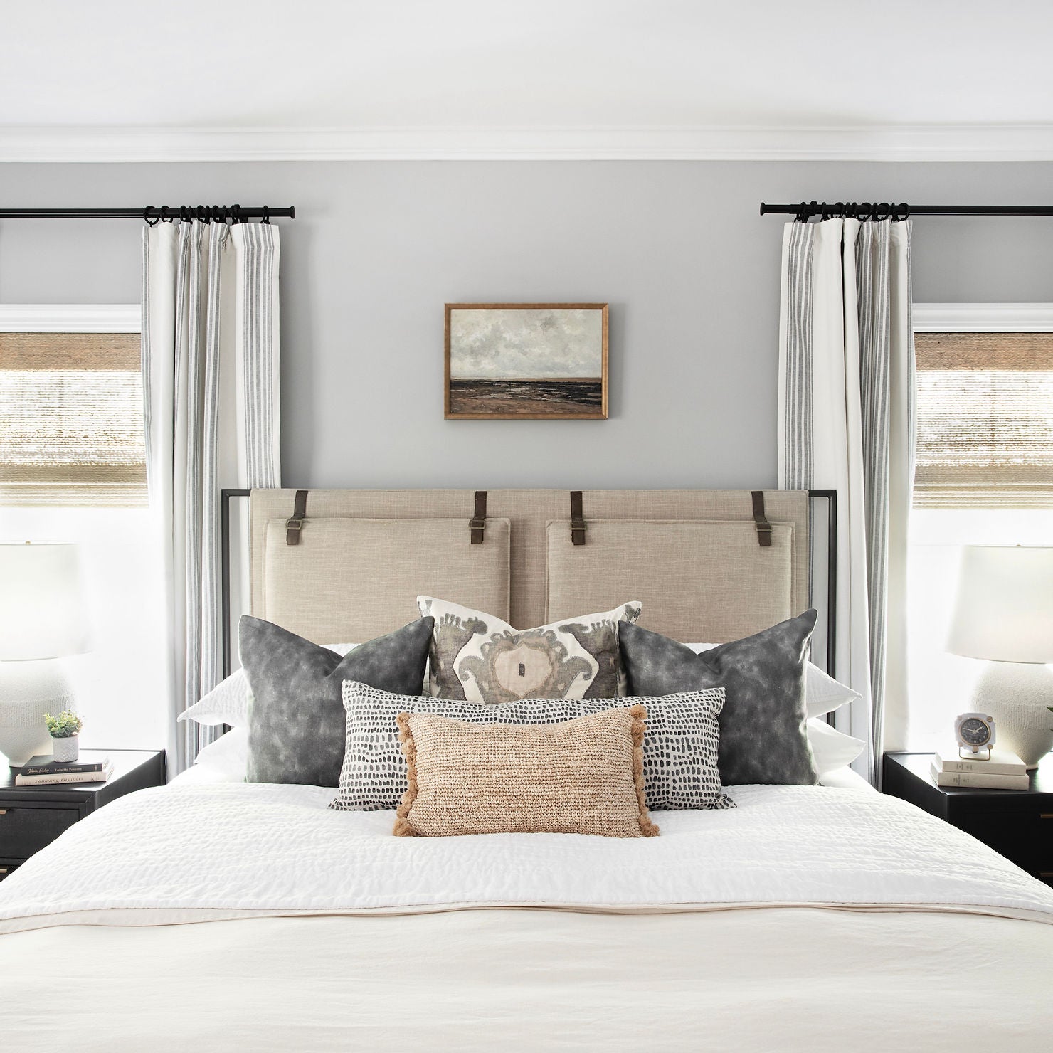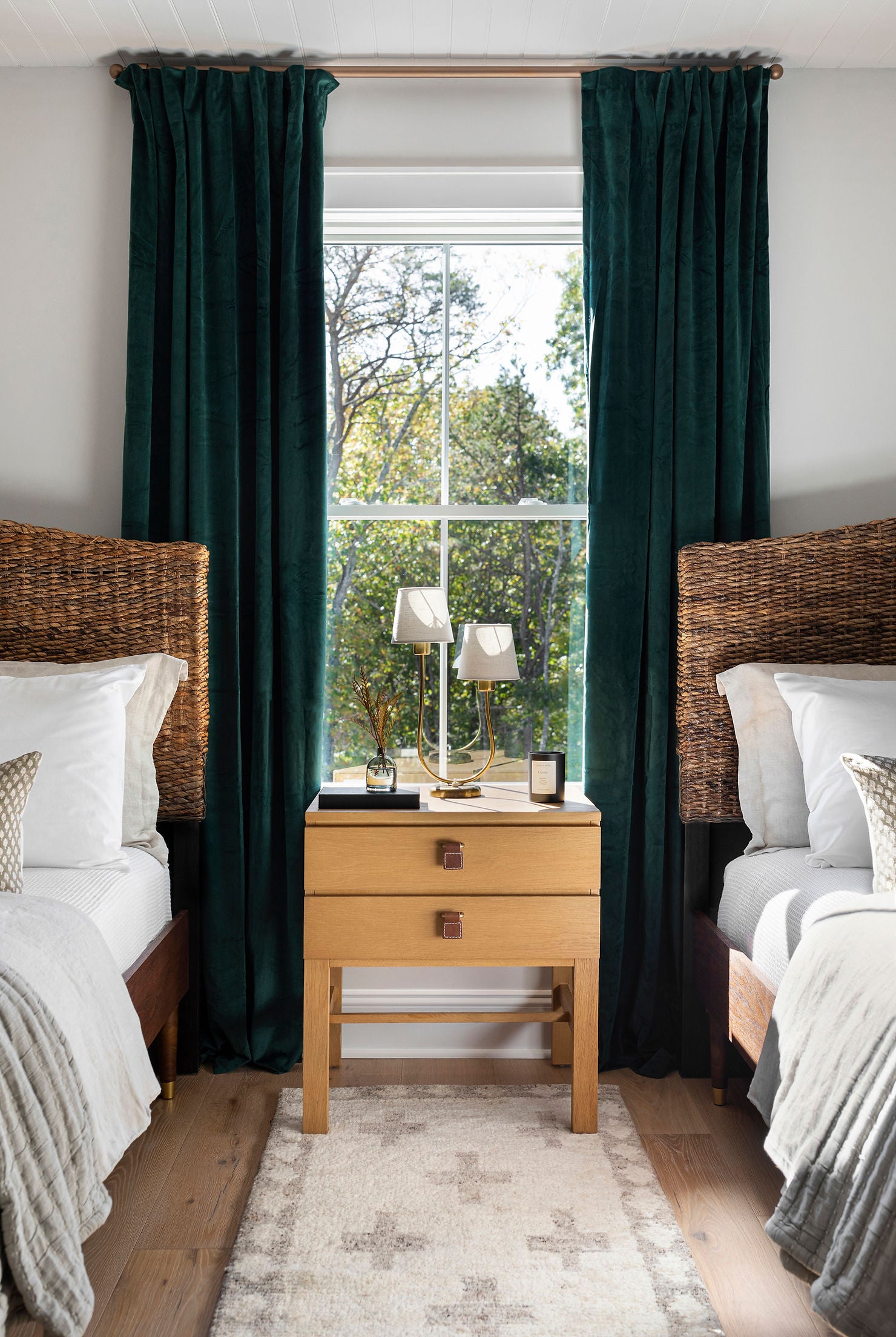 Many people like to double up their window treatments, combining a shade or blind with curtains. This option can offer more flexibility when you want just a little coverage or would like to allow in light while maintaining privacy. Keep in mind, though, that layered window treatments can also seem a little fussy and have lost a bit of popularity over the last few decades. Although, I’m still quite partial to a woven shade paired with stunning drapes—especially in a bedroom. But many people are opting for sleeker, more minimalist window treatments. If you have beautiful windows, less is often more.