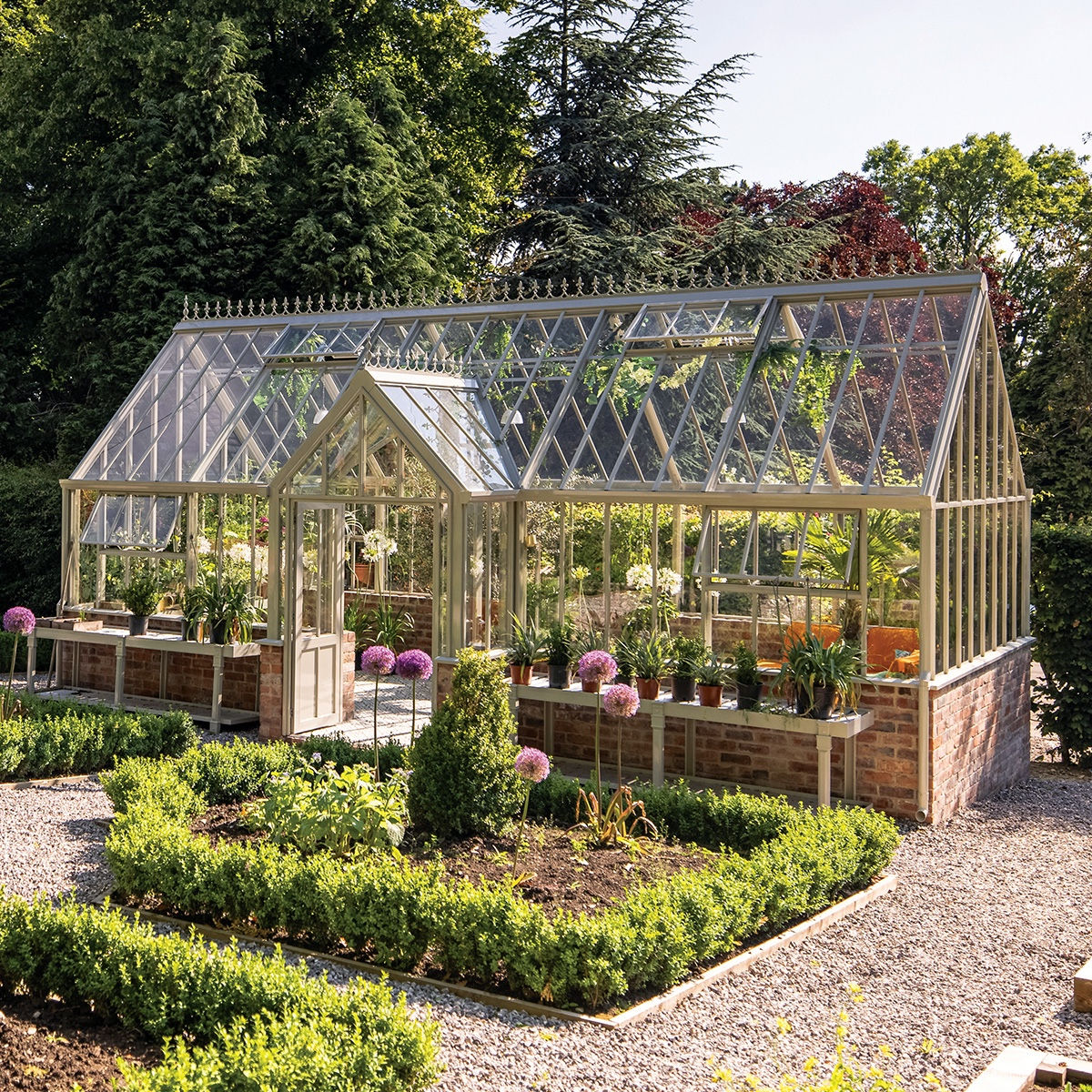 We focused on making our greenhouse part of our landscape, so we worked with Hartley Botanic, a bespoke glass greenhouse design service. They specialize in Victorian-style handcrafted greenhouses that are larger-scale builds but available in a range of sizes.
