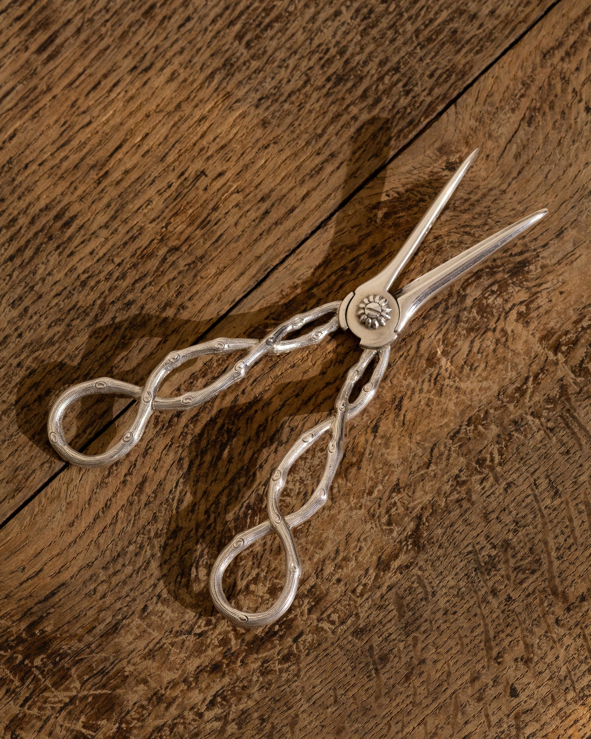 A rare, beautifully crafted pair of Victorian sterling grape shears — elegant, sculptural, and richly detailed. A refined accent for entertaining, styling, or collecting.