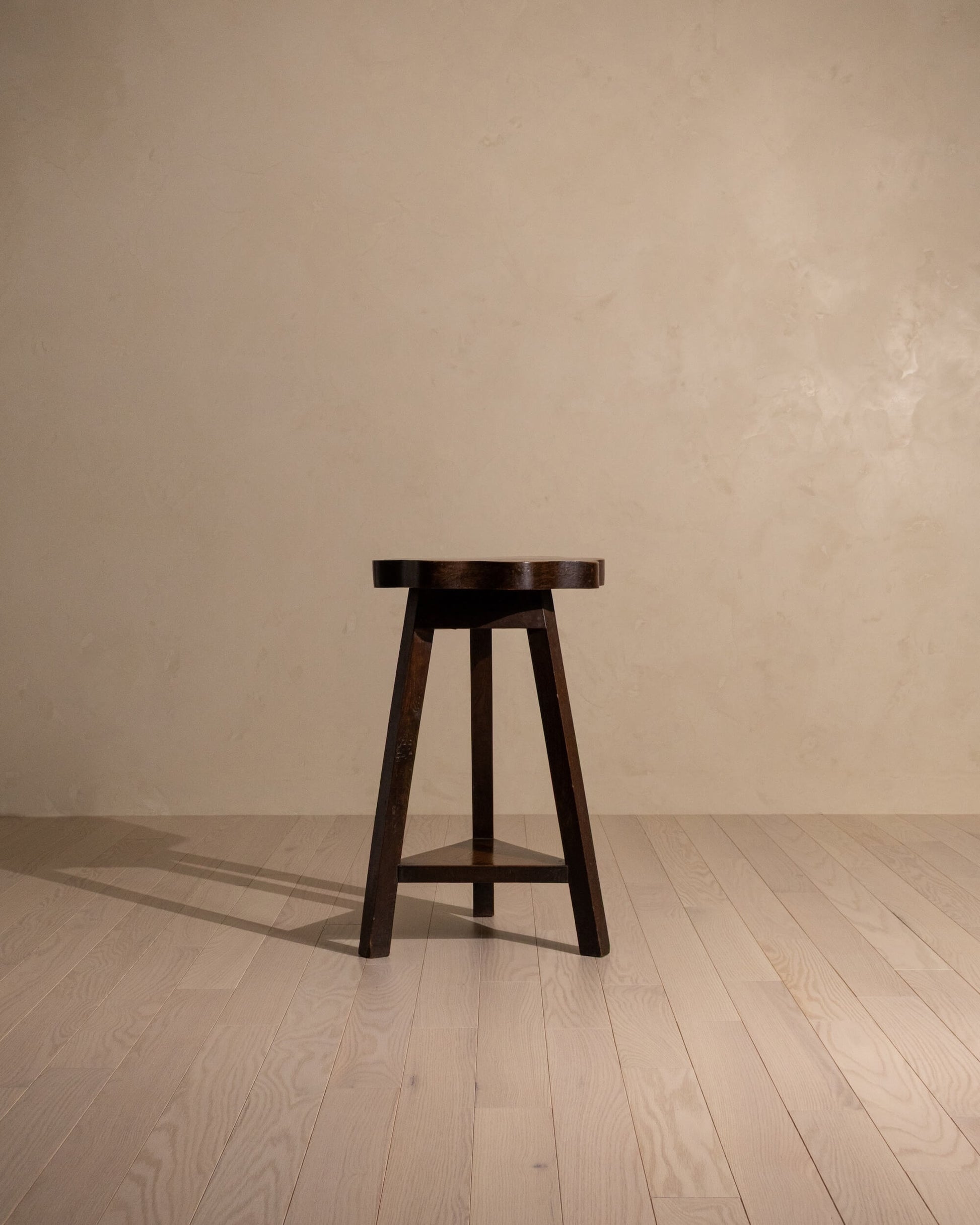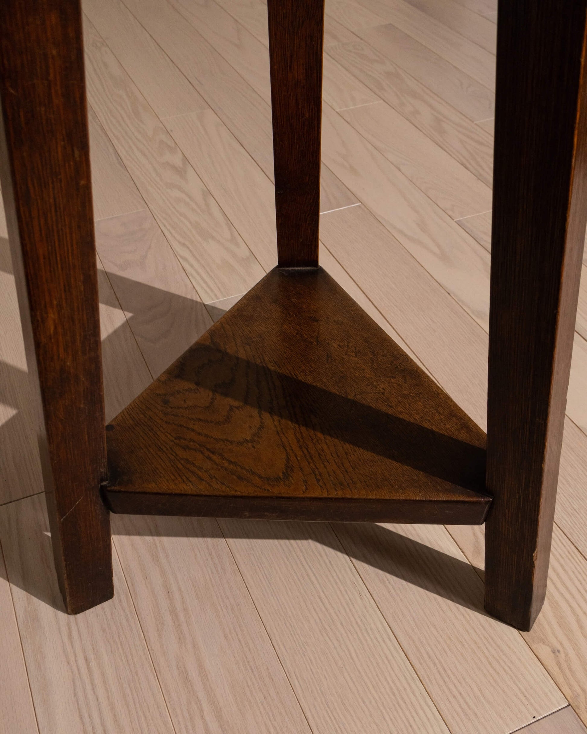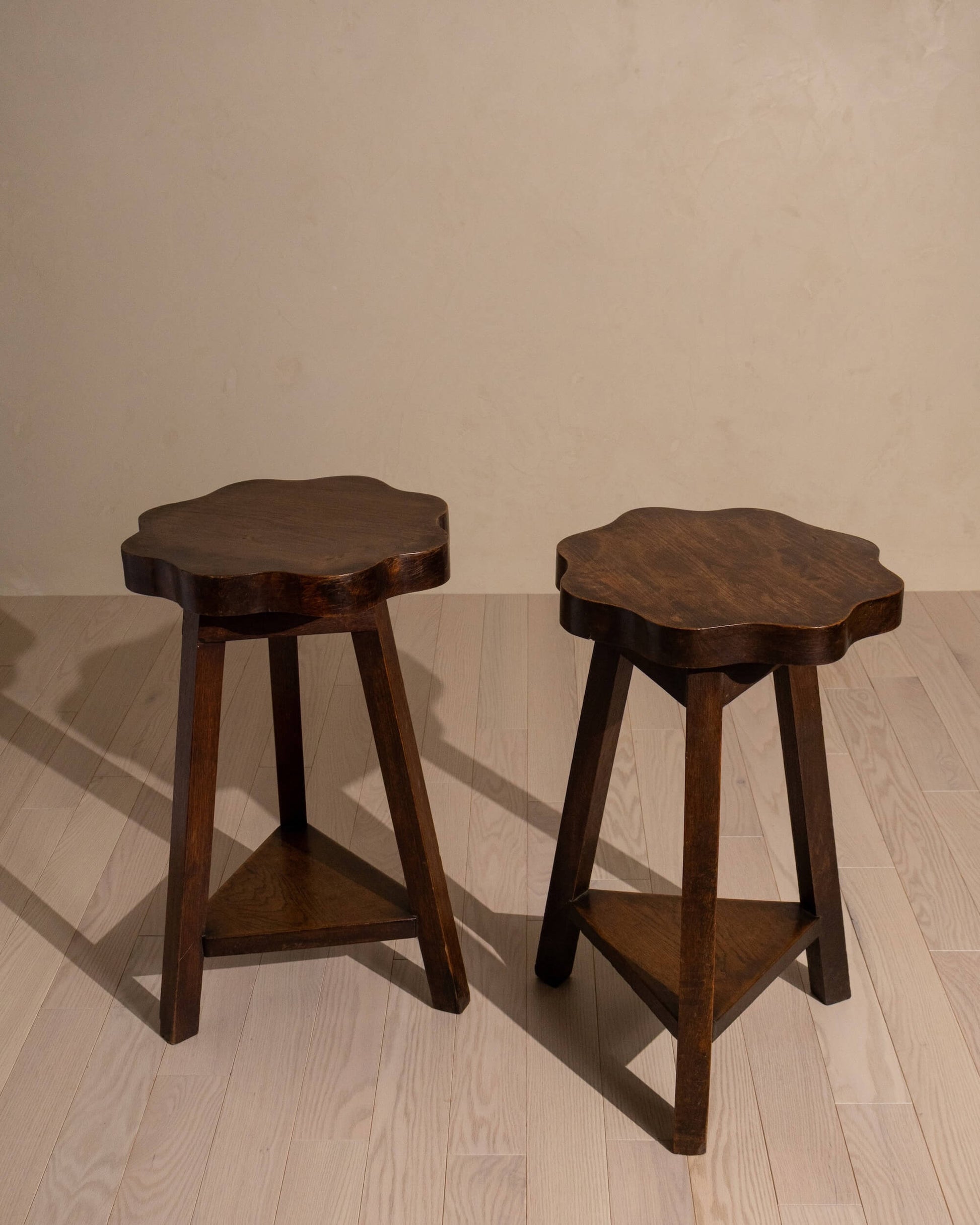 A sculptural early 20th-century occasional table, crafted in elm and oak with a distinctive wavy top and tripod base. The sinuous form and rich patina bring quiet character to any room.
