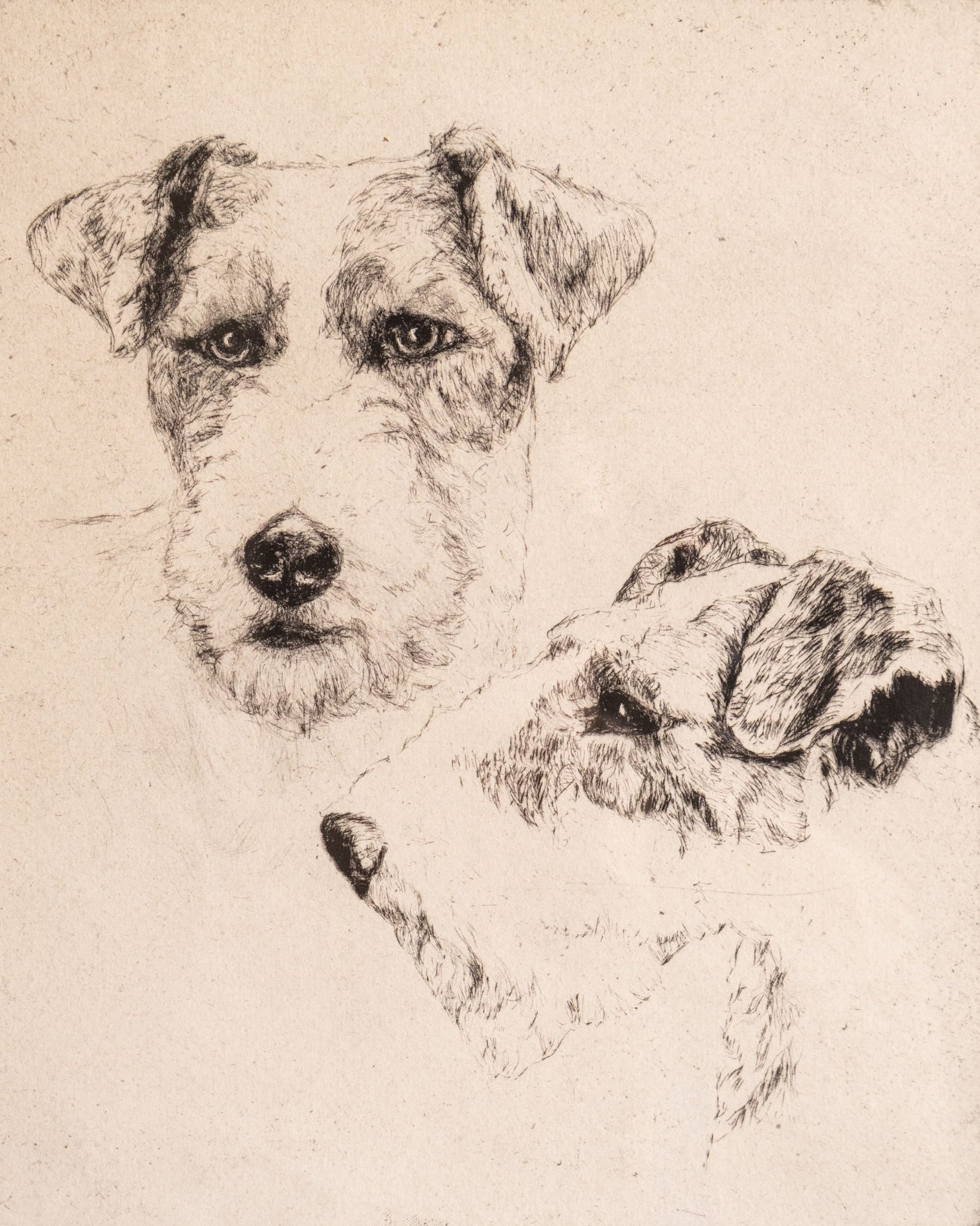 A charming etching of two wire fox terriers, signed and titled in pencil by the artist, Edith Derry Willson.