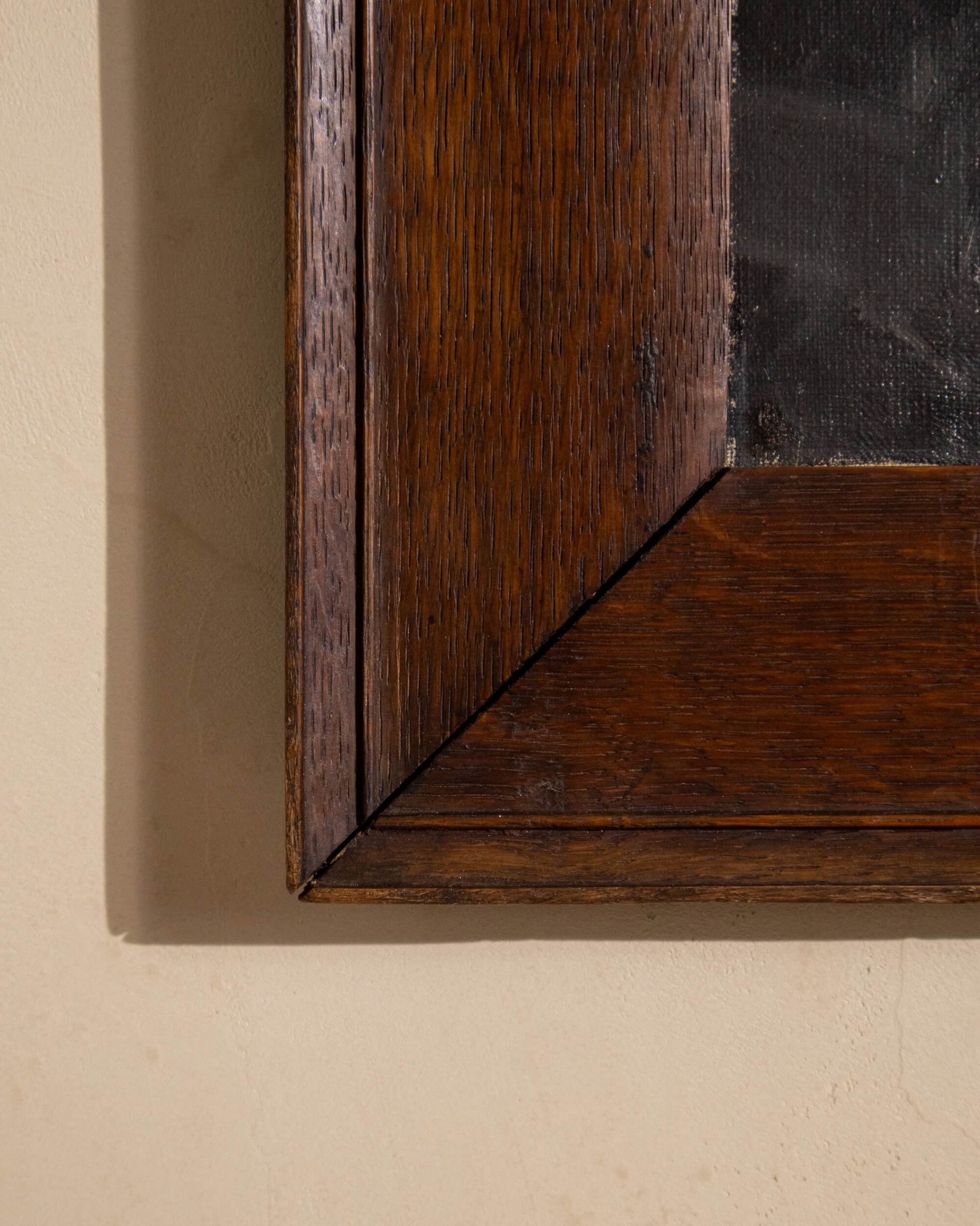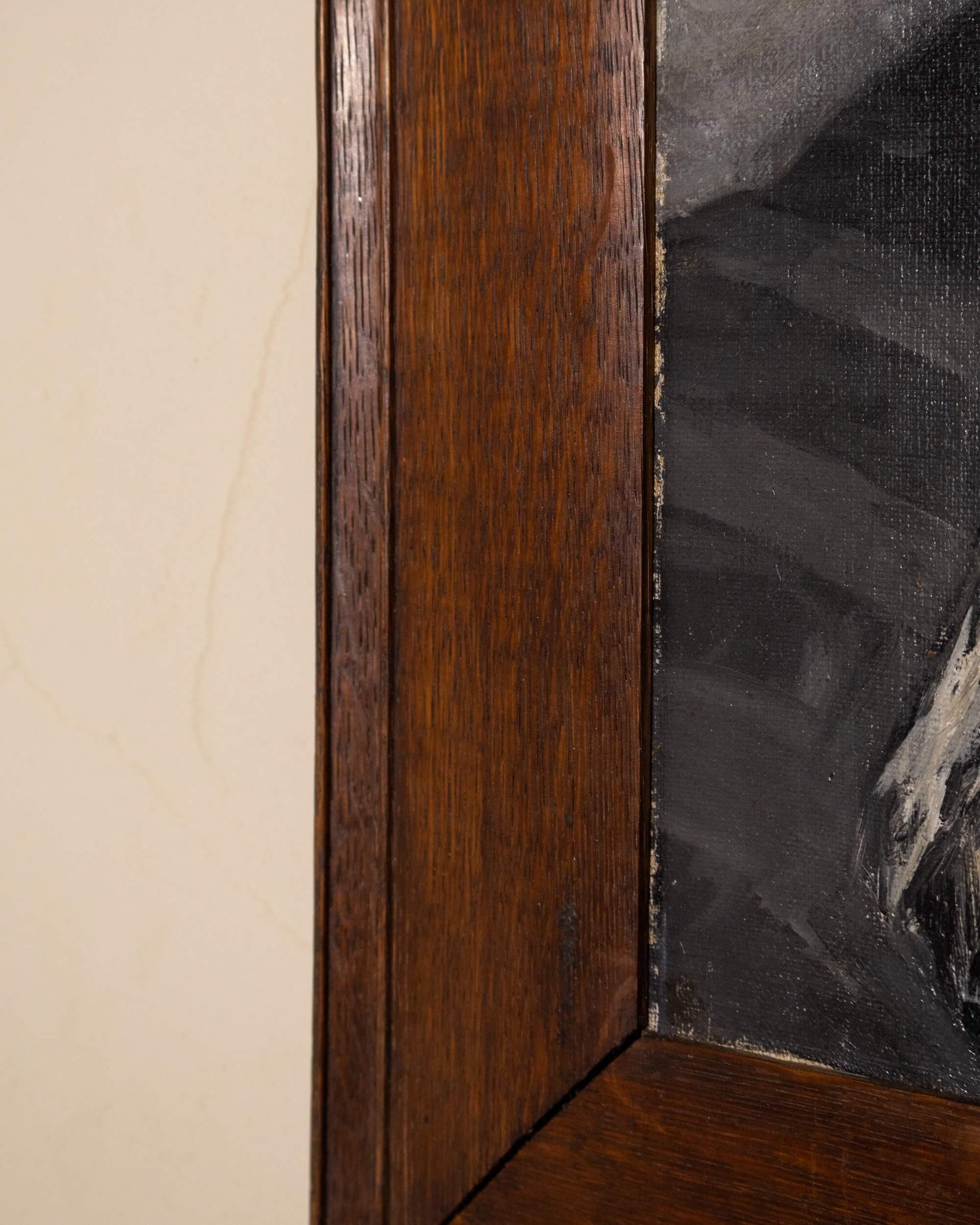 Signed “RAHBULA” at lower right, the portrait is housed in its original oak frame, with an inscription on the back of the canvas that reads “Our Oak.” Edwards trained at the Royal Academy Schools in London from 1905 to 1910 and became known for her portrait miniatures and animal subjects. Her work was frequently exhibited by the Royal Miniature Society and the Royal Academy, and she painted society figures including the Duchess of Kent.
